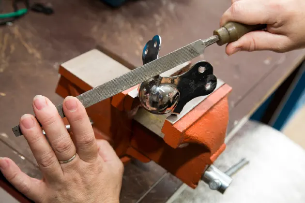 Người thợ cơ khí thao tác với dũa kim loại