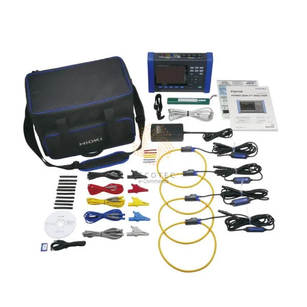 - Phụ kiện: Hướng dẫn sử dụng × 1, hướng dẫn đo × 1, bộ dây điện áp L1000-05 × 1 (Đỏ/vàng/xanh/xám/đen, kẹp cá sấu × 5, ống xoắn × 5), kẹp màu (để xác định màu cảm biến kẹp) × 1 bộ, ống xoắn × 5, bộ đổi nguồn AC Z1002 × 1, dây đeo × 1, cáp USB (chiều dài 1 m 3.28 ft) × 1, bộ pin Z1003 × 1, PQ ONE (phần mềm, CD) × 1