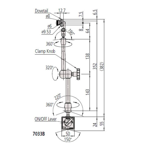 | 7032B | Đế từ vạn năng | ø6mm, ø8mm, ø9.53mm (3/8”) | Có cung cấp | Có hệ thống khóa cơ |