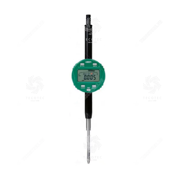- Chức năng: Bật/tắt, cài đặt 0, dung sai hiển thị Go and No-Go, cài đặt trước dữ liệu, thay đổi hướng đo, max./min./TIR, chuyển đổi inch/mm, đo giá trị tuyệt đối/ gia tăng, xuất dữ liệu