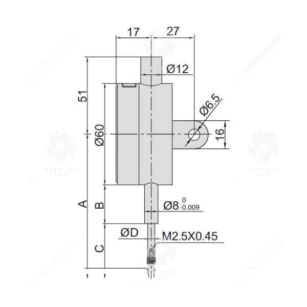 - Chức năng: Xuất dữ liệu, dung sai, cài trước dữ liệu, giữ dữ liệu, thay đổi hướng đo, max./min./TIR, thời gian tắt nguồn, bật/tắt, mm/inch, điều chỉnh độ phân giải