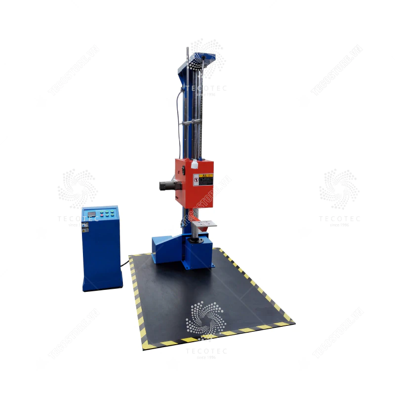 - Máy kiểm tra này mô phỏng sự rơi tự do của gói hàng trên các góc, cạnh và bề mặt của nó khi các hộp đóng gói chứa đầy sản phẩm đang trong quá trình xử lý, chất và dỡ hàng. Mẫu thử (thùng) sẽ được thả rơi tự do 10 lần thử nghiệm từ độ cao xác định, sau đó kiểm tra tình trạng hư hỏng của thùng và ảnh hưởng đến sản phẩm bên trong. Do trọng lượng của hộp đóng gói là khác nhau nên chiều cao rơi cũng không giống nhau.