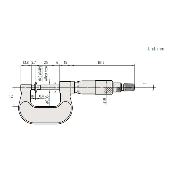 • Đường kính mỏ đo: 14.3 mm