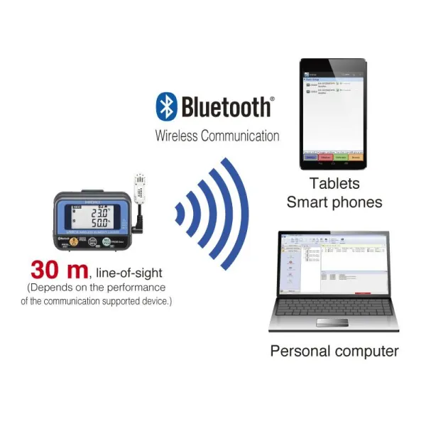 - [Được sử dụng làm mô-đun ghi nhật ký (Đo thời gian thực)] Thiết bị có thể được sử dụng như một mô-đun ghi nhật ký LR8410 để ghi và hiển thị dữ liệu trong thời gian thực và để điều khiển lên đến 7 đơn vị, khoảng cách kết nối: 30 m